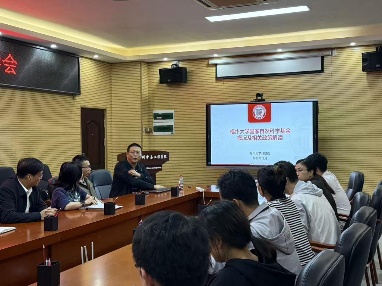 于学院225会议室召开专题会议,聚焦国家自然科学基金申报工作。院党委书记李礼建、院长汪少芸教授、副院长石贤爱教授等30余名教师参会,会议由汪少芸院长主持,校科技处项目科周欣荣老师受邀作专题报告。