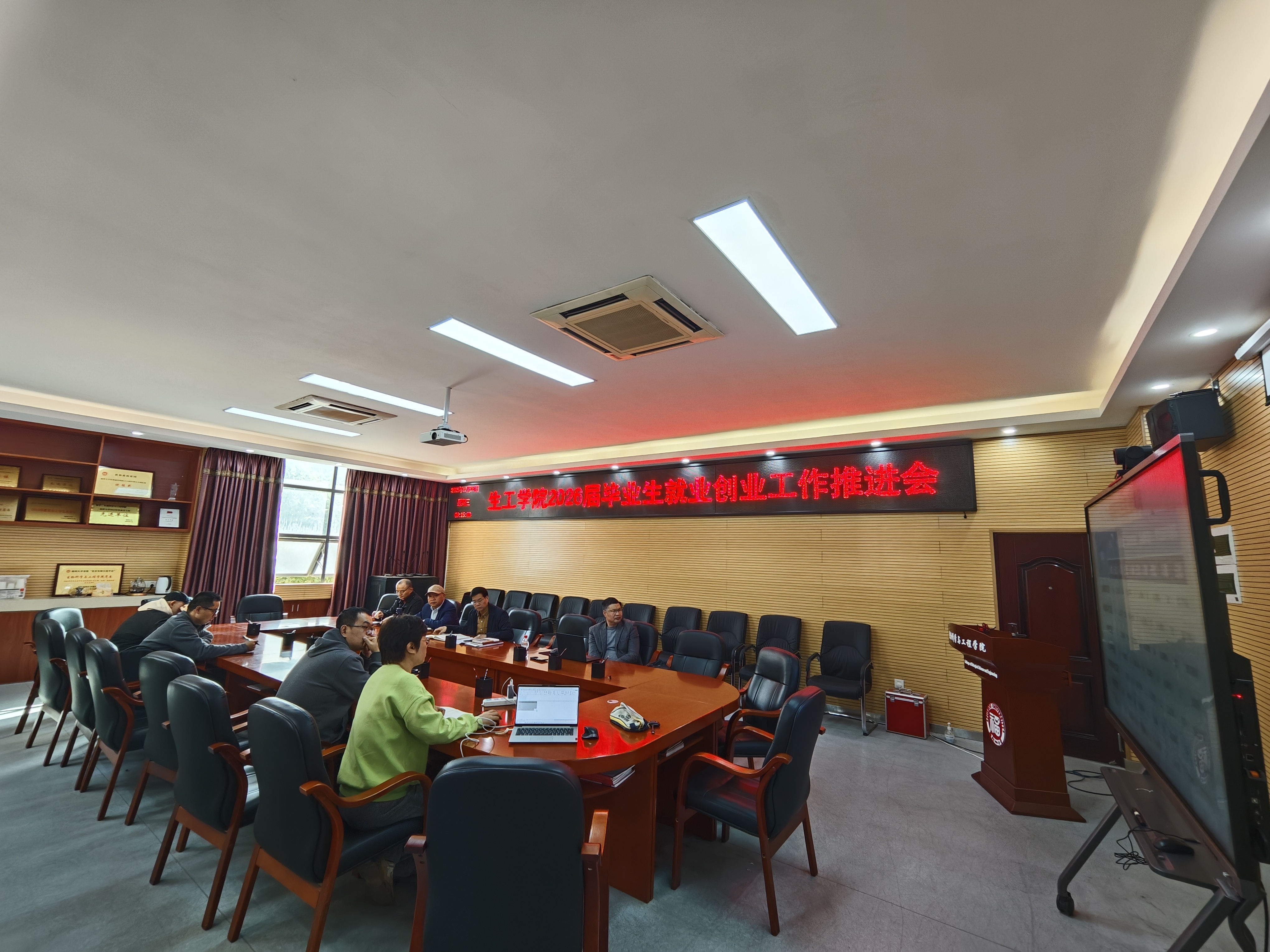 在225会议室召开2026届毕业生就业创业工作推进会。全体院领导、各系主任、学位点负责人、毕业班辅导员和本科毕业班班主任参会,会议由学院党委副书记曹仁秋主持。